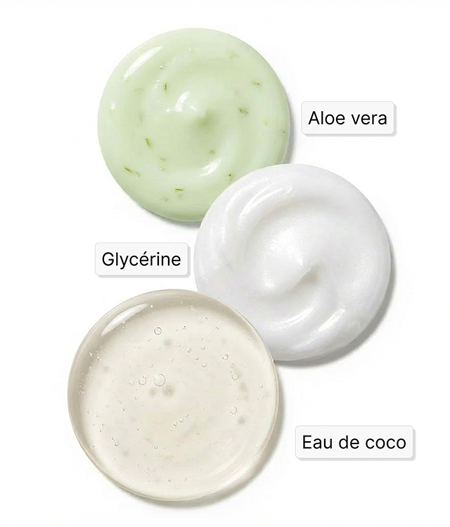 • Agents nettoyants doux : Eau de coco