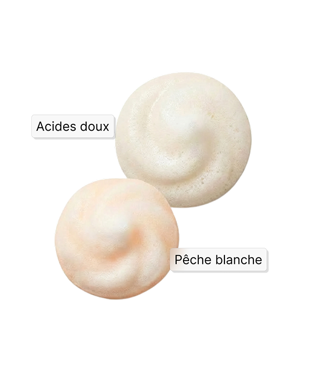 Formulée avec un acide doux exfoliant et un extrait de pêche blanche, elle aide à lisser la surface de la peau, affiner le grain et révéler un teint plus frais et lumineux dès les premières utilisations.